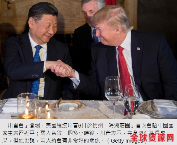 「川習會」登場,美國總統川普6日於佛州「海湖莊園」首次會晤中國國家主席習近平;兩人茶敘一個多小時後,川普表示,完全沒有獲得成果,但他也說,兩人將會有非常好的關係。