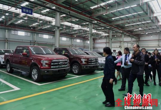 整车进口口岸停放的平行进口车吸引海外华文媒体高层眼球。 周毅 摄
