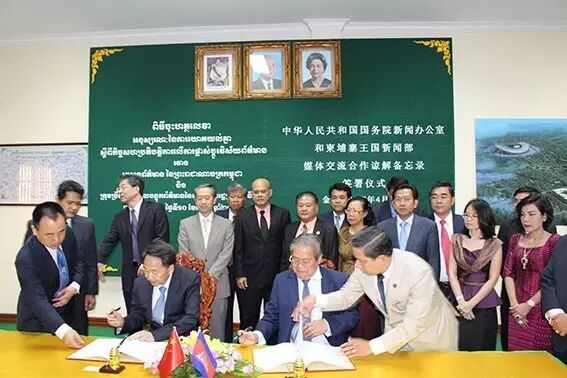 新闻部部长乔干那烈和中国中央宣传部副部长、国务院新闻办公室主任蒋建国代表双方签字。中国驻柬埔寨大使熊波出席仪式。