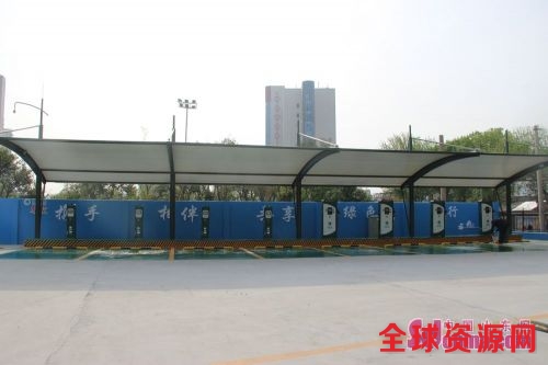 充电桩前设有临时停车位,并安装有防雨遮阳棚,确保车主阴雨天气时的充电安全。