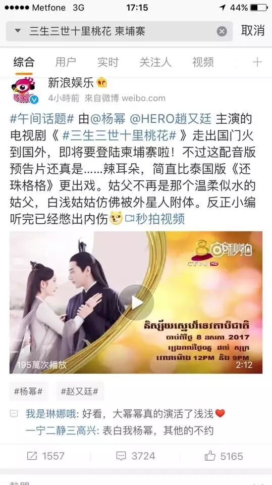 由杨幂、赵又廷主演的电视剧《三生三世十里桃花》走出国门火到国外,即将要登陆柬埔寨啦!不过这配音版预告片还真是……辣耳朵,这一张嘴就惊呆了四海八荒的小伙伴们!你们先感受一下: