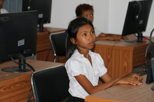 默德朗乡小学学生在中国公司援建的电教室内上课。于景浩 摄