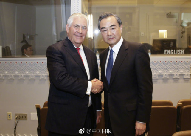 【王毅会见美国务卿蒂勒森】4月28日王毅外长在联合国会见美国国务卿蒂勒森,王毅表示两国元首开展的密切沟通对两国关系发展发挥着重要引领作用。双方要密切合作,为特朗普总统年内对华进行国事访问做好各种准备。