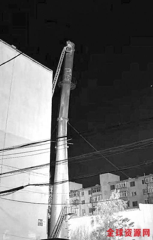 很快,民警、特警、社区工作人员、消防人员、供暖单位的工人们赶到了现场。民警和特警立即在现场拉上了警戒线,社区工作人员则挨家挨户通知周边三栋楼的居民。“东、南、北三个方向都是居民楼,而且离出现险情的烟囱非常近。”社区工作人员刘先生说,周边三栋楼共有238户居民,社区工作人员立即挨家挨户敲门,迅速疏散群众。有的居民年老体弱,行动不便,社区工作人员就背着老人下楼。晚上8点左右,所有居民疏散完毕。此时,消防战士已经架起云梯,利用设备将倾斜的烟囱暂时固定。焊割工人也通过云梯爬上了烟囱,用电气焊切割烟囱,排险工作有序进行。4月30日凌晨4点左右,倾斜的烟囱被切割成5段,陆续被从高空卸了下来,险情彻底排除。