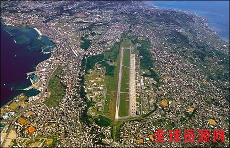 资料图:普天间美军基地被居民区包围