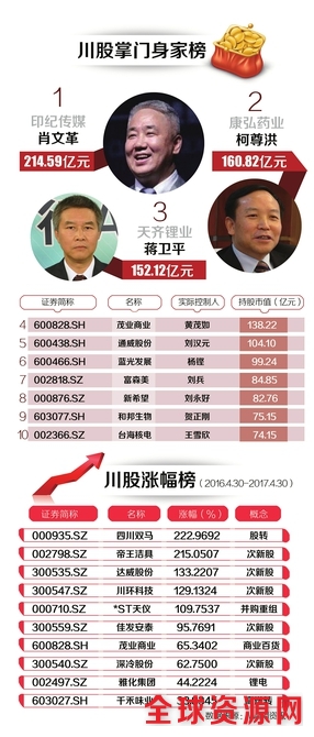 随着上市公司年报披露完毕,过去一年里上市川股掌门们的身家榜也随之出炉。