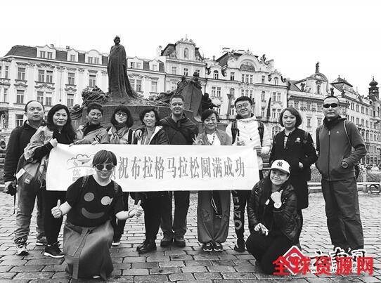 布拉格广场是全世界著名的广场,每年在这座广场上都会迎来马拉松比赛。2017年布拉格马拉松赛将于明日在布拉格心脏——老城广场开跑。昨日,来自昆明的12名跑友经过十余个小时的飞行顺利抵达布拉格。