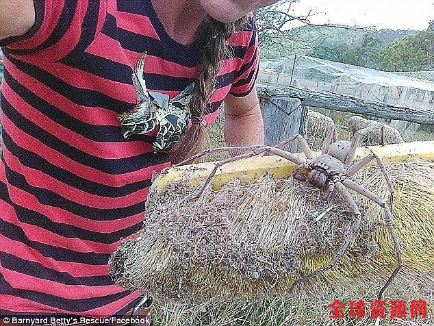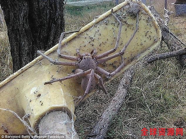 这只巨大的“猎人蛛”出现在班亚德·贝蒂的家中。贝蒂说,她平时并不害怕蜘蛛,但这只蜘蛛实在太大,“我本以为用玻璃杯和一张纸的老方法就能抓住它,但当我走进屋时,发现只能用水桶才能将它罩住”。