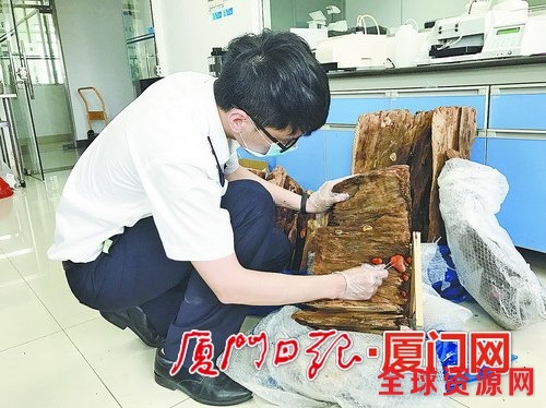 当日,一名来自台湾的旅客搭乘AE991航班,携带了4大块共65公斤的木材,经未申报通道入境。在被检疫人员截获后,该旅客声称这批木材将用于雕刻,木材表面潮湿是因为进行了清洗。检疫人员检查后发现,木材表面附着大量橘黄色菌类生物,并有许多虫洞,于是用镊子夹住一块蛀孔最多的木材表皮进行“解剖”。送检确认,旅客携带的木材,除了含有大量台湾乳白蚁以外,附着的橘黄色菌类生物为野生牛樟芝——这是厦门机场口岸首次截获的物种。